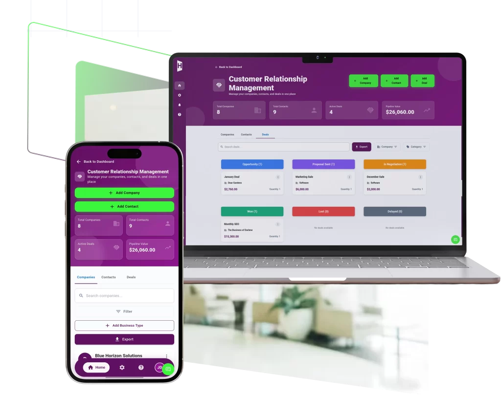 HubSpark is built to work seamlessly across both mobile and laptop devices, giving your small business complete flexibility based on how you prefer to work.